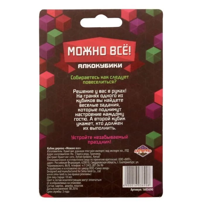Купить кубик "можно все", алкокубики для принятия решений от 60 руб. с доставкой до пункта выдачи в Янауле. Интернет магазин ДекаМаркет. Оплата при получении.